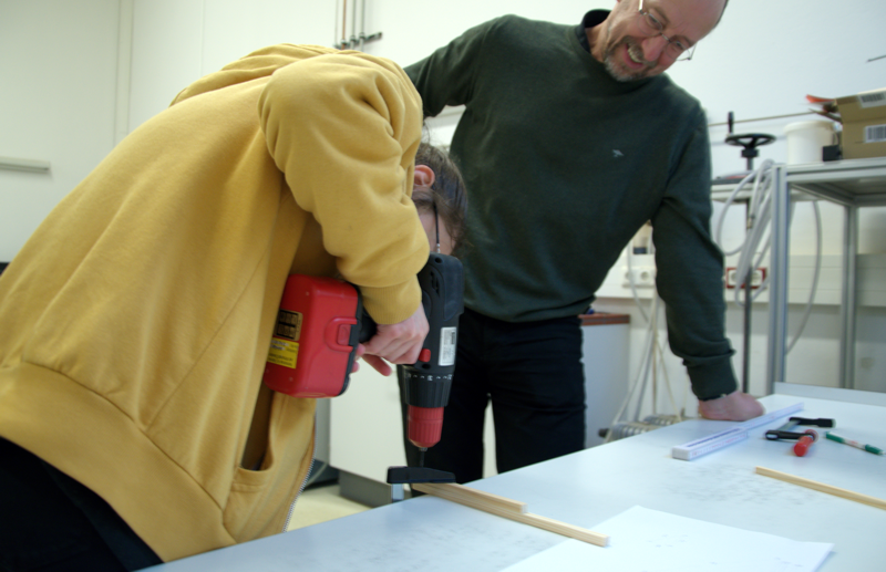 Die Schüler bekamen die Idee vorgestellt und zeigten sich von der Idee eingenommen. Zuerst wurden die Rahmenbedingungen besprochen, dann erste Grundlagen, was es bei der Konstruktion zu beachten gilt. Auch die vorgeschriebene Materialliste verdient Beachtung. Danach konnten anhand existierender Beispiele aus der Praxis erste Ideen gesammelt und Entwurfe zu Papier gebracht werden.